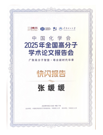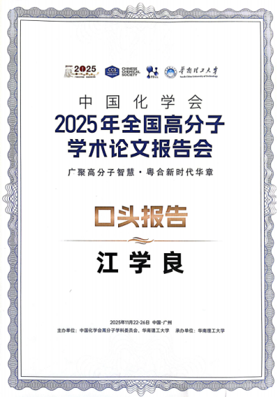 (通讯员 刘倩倩)2025年11月22-26日,由中国化学会高分子学科委员会和华南理工大学主办的中国化学会2025全国高分子学术论文报告会在广州白云国际会议中心隆重举行。本次大会以“广聚高分子智慧·粤合新时代华章”为主题,深度聚焦高分子化学、高分子物理、高分子材料和前沿高分子等领域,在为期四天的会期内共设置23个主题分会场,包括7个大会报告、420个邀请报告、818个口头报告、371个快闪报告和2106个墙报。本次大会以高分子科技在新时代国民经济社会中的重要作用为切入点,集中展示我国高分子科学与材料领域近年来的研究成果和发展趋势。