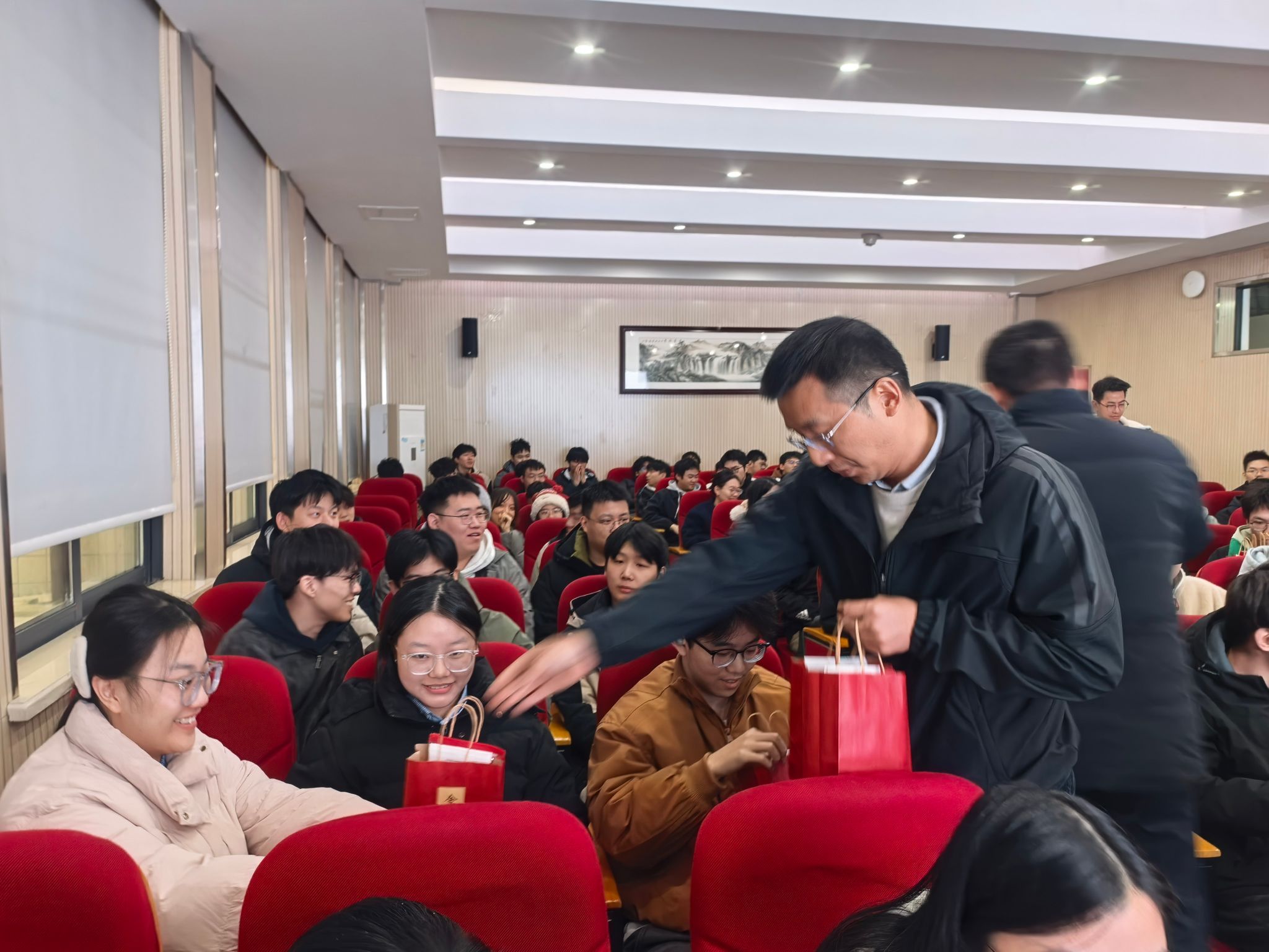 随后,老师们为正在备战的考研学子们送上一份份饱含温暖的“关怀大礼包”。礼包中包含寓意“笔下生辉”的实用文具,让人感觉“暖暖的,很安心”的暖宝宝贴和医用口罩,以及一份别具心意的“快乐肥宅水”,寄托了老师们对考研学子放松心情、一鼓作气的暖心鼓励。每一件大礼包都凝聚着公司对考研学子细致入微的关怀与美好祝愿,祝愿同学们金榜题名,前程似锦。