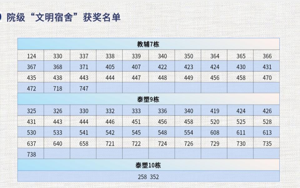 经层层筛选,教辅7栋、泰塑9栋、泰塑10栋共计76间宿舍脱颖而出,获评院级“文明宿舍”。马科及各年级辅导员为获奖宿舍代表授牌并颁发奖品,这既是对大家用心建设宿舍的肯定,更是对文明之风持续传递的期许。