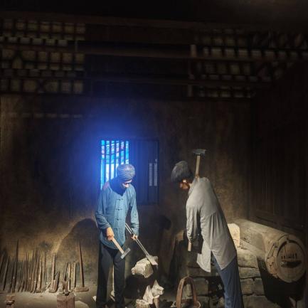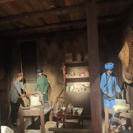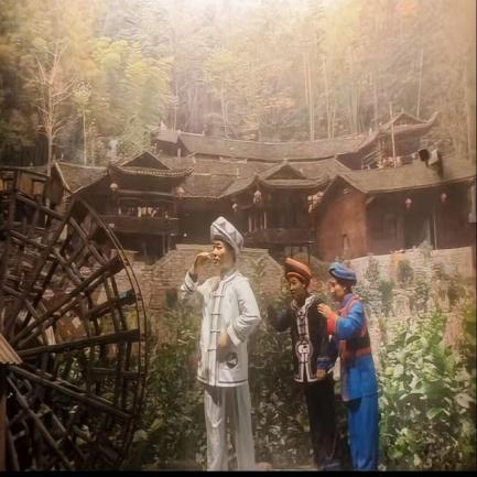 步入民俗生活展区,原样复原的土家吊脚楼即刻映入眼帘。廊前悬挂的玉米、屋内陈设的生活器具,生动再现了土家人依山而居、勤耕善作的日常画卷。现场模拟的匠作声响、市井吆喝,进一步唤醒了人们的乡土记忆,让团队成员沉浸式体验到武陵山区深厚的人文底蕴与独特的生活美学。