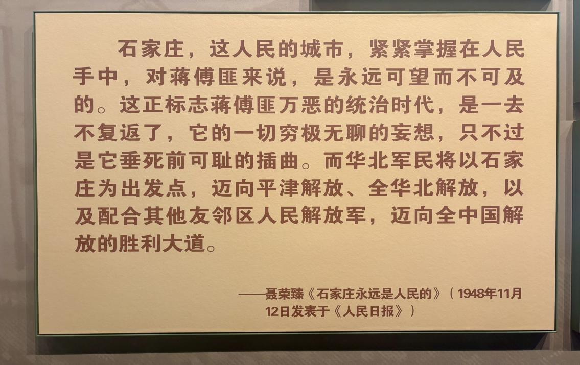 纪念馆前的“胜利之城”雕塑,定格了解放军战士奋勇冲锋的历史瞬间;馆内陈列的泛黄电文、战地照片、武器装备,无声诉说着这场攻坚战的艰苦与辉煌。石家庄的解放,不仅切断了国民党在华北的战略交通线,也为后期平津战役的展开与党中央移驻西柏坡创造了关键条件,以“敢打必胜”的英雄气概,树立起华北解放战争的第一座里程碑。