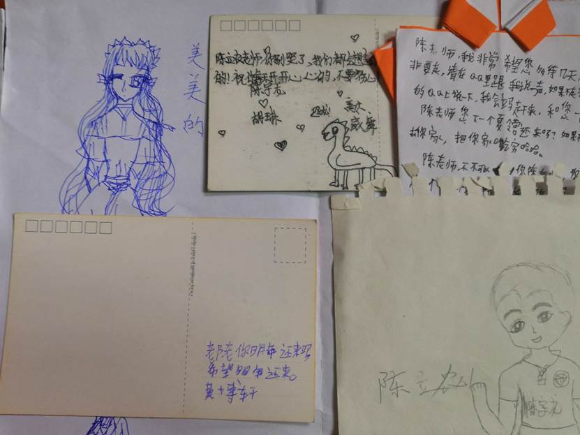 相处时间虽然短暂,但是孩子们已经和队员们成了无话不谈的挚友。孩子们真心地对待每一个对他们好的人,珍惜每一分一秒的幸福时光。分别在即,他们也给队员们留下了明信片和手绘,童真的留言令队员倍感温暖。