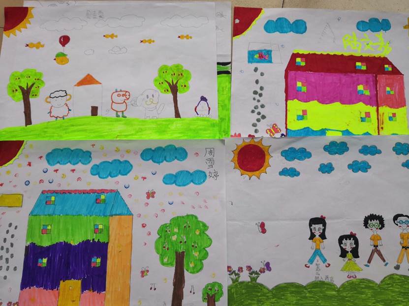 孩子们的多才多艺屡屡给队员们惊喜!孩子们平时总爱在黑板上用各色的粉笔画图,队员们给孩子们送来彩笔之后,他们的绘画才能便毫无拘束地得到了施展。临行前,孩子们把这些可爱的作品送给了队员们。