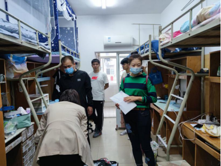 各班班主任老师们分别前往各自所带班级宿舍查看入住情况。老师们细致查看了寝室卫生与物资配备情况。同时嘱咐同学们要进一步提高安全意识,防火、防盗、防诈骗,勤洗手、戴口罩,保护人身及财产安全。