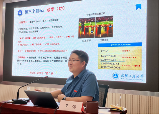 典礼结束后,书记、经理为同学们上开学第一课。王涛以《漫谈大学》为题,讲述了什么是大学,大学的职能是什么,如何度过老员工活等内容,鼓励新生尽快适应老员工活、明确目标、找准方向、健康成长成才。
