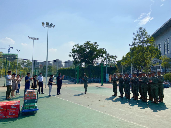 本网讯(通讯员 张茜、石欣平、邓雪晴)9月19日下午,公司武装部、yl34511线路中心、计算机科学与工程公司人工智能公司、环境生态与生物工程公司联合在篮球场看望并慰问军训团二营全体教官。