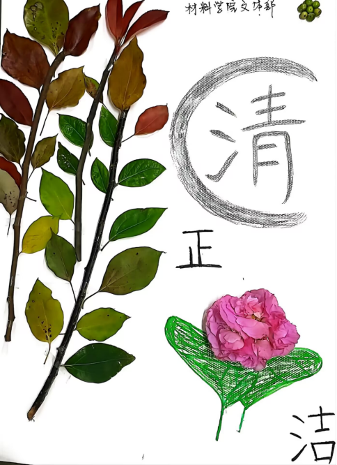 党的二十大会议报告指出:“坚决打赢反腐败斗争攻坚战持久战,腐败是危害党的生命力和战斗力的最大毒瘤,反腐败就是最彻底的自我革命。”材料学子围绕“奋进新征程,廉心向未来”主题,利用剪纸、树叶、彩笔等创作了一幅又一幅精美作品。