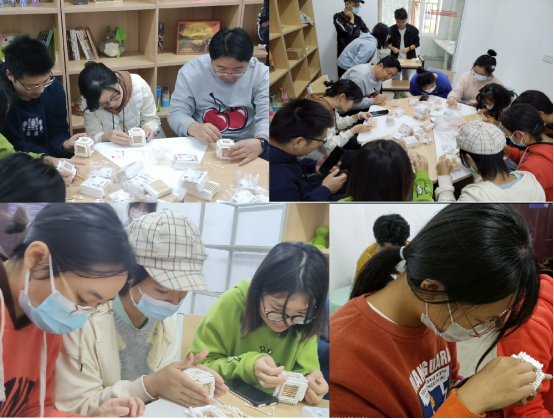 (通讯员:芦梦荻)为了庆祝建校50周年、帮助同学们提高专注力、全方位调动眼、耳、口、手、脑,提升成就感,11月20日上午,教辅五员工社区“开心如室”举办了搭建棉签房活动。棉签是生活中常见的物品,但是经过巧妙的结构力学,不用任何胶水,就能够搭建起一座稳固的小房子。公司党委书记王涛、副书记张琼、辅导员柯贤忠、芦梦荻参与活动。