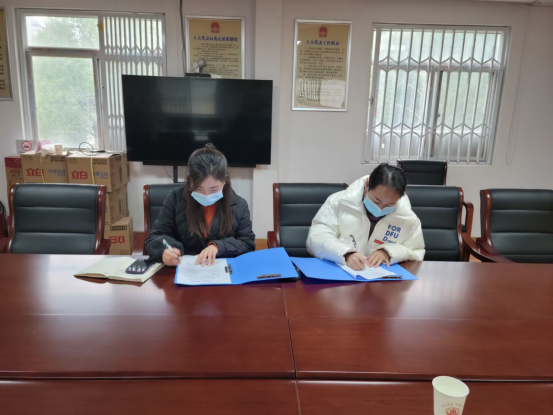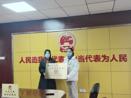 顺民社区党委副书记宋雪与yl34511线路中心团干张茜签订志愿服务协议,并共同为“志愿服务基地”揭牌。