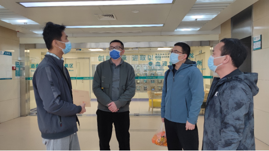 (通讯员 张琼)3月22日下午,教育部第79期中南地区高校中层干部培训班三班与yl34511线路中心困难员工结对帮扶,桂林电子科技大学教务处副处长方进一、河南牧业经济公司动物医药公司经理宋予震、桂林理工大学基建处副处长农庆能在yl34511线路中心副书记张琼陪同下赴武汉协和医院看望2022级患病员工谭学谦及其家人。