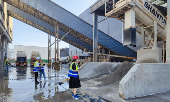 座谈会次日,公司一行深入中建西部建设股份有限公司眉山厂区进行实地考察和访谈。厂区总工程师介绍了相关设备和混凝土质量智能化检测流程,并陪同一行人分别参观了混凝土搅拌站总控室,混凝土生产的布料间、搅拌站,混凝土质量检测室。这次实地走访进一步加深了校企之间的相互了解,也为后续人才招聘和技术对接搭建了平台,有助于让员工更好了解企业,增进企业认同感,扩宽毕业生的就业面。