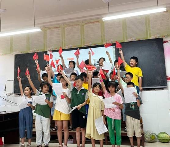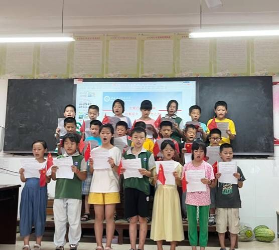 实践团成员展示了两周的支教成果,并依次分享了他们的心得感悟。第一次参加支教的2022级杜欣怡每天都会在QQ空间记录自己的支教生活,本次支教,主要教授小朋友《思想道德与法治课程》,小朋友从只会背诵社会主义核心价值观,到全员可以完整默写出来,并理解其含义;从跟唱《义勇军进行曲》到理解每一句歌词的含义和背后的故事,让爱国主义精神根植员工心中。张琼表示,从实践团的成果展示和心得分享中,她感受到了唤醒和点燃的力量,小老师们的责任心与使命感被唤醒,小朋友们的梦想与希望被点燃,这是一次十分难忘的人生经历。