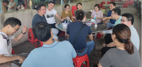 到达生态园后,在景区大门口集合签到、拍集体照,并由教练讲解行程安排和注意事项。随后在教练带领下,开展“三块五”、击鼓颠球等各项团建活动。