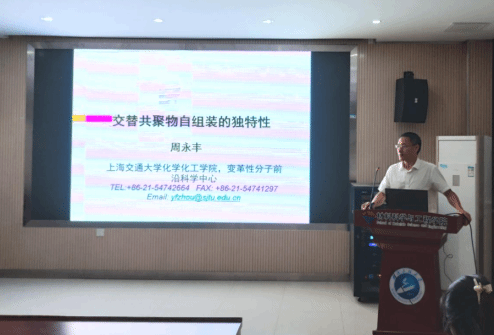 周教授详细介绍了他的团队近年来在交替共聚物的自组装及其应用方面取得的研究进展,提出用双硫醇(或胺基)单体与双环氧单体的点击共聚制备两亲性交替共聚物的新方法,拓展了两亲性交替共聚物的合成路径和种类。从理论和实验两个方面系统研究了交替共聚物的自组装行为,发现:1)交替共聚物可以自组装新的超分子结构;2)交替共聚物自组装遵循折叠链机制;3)交替共聚物自组装具有超小和均一的特征尺寸,而且组装过程无分子量依赖性;4)交替共聚物自组装易功能化,相关研究工作拓展了大分子自组装的研究范畴。