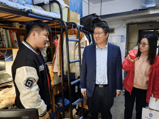(通讯员:丁子夕)距离2024年全国硕士研究生招生考试只剩最后30天的时间,为了帮助同学们缓解焦虑,坚定信心,11月23日中午,公司党委书记王涛、副书记张琼、2020级辅导员丁子夕前往宿舍为同学们加油打气。