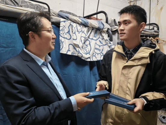王涛代表公司表达了对考研同学们的关心与祝福,他亲切与同学们交谈,了解大家的复习状态,鼓励考研学子们在最后的冲刺阶段做好统筹,合理安排各科的复习时间;抓好重点,在自己擅长的部分抓紧提分;调好状态,室友之间要互相加油打气不断提升信心,最后王涛向同学们赠送了钢笔,寓意让大家能够在考场上自信书写出美好的人生篇章。