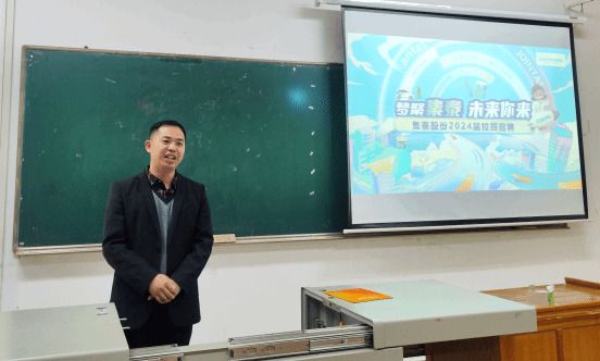 颁奖仪式后,公司HR蔡晨为在场同学进行招聘宣讲,从企业介绍、业务范围、薪资待遇、企业文化、学长推荐等各方面进行了全面介绍。童良号作为员工,为台下的“学弟学妹”们进行了工作选择的经验分享。同学们认真聆听并记录,现场不时爆发出热烈的掌声。在招聘结束后,不少同学递交简历并与公司一行人积极沟通,现场气氛十分热烈。